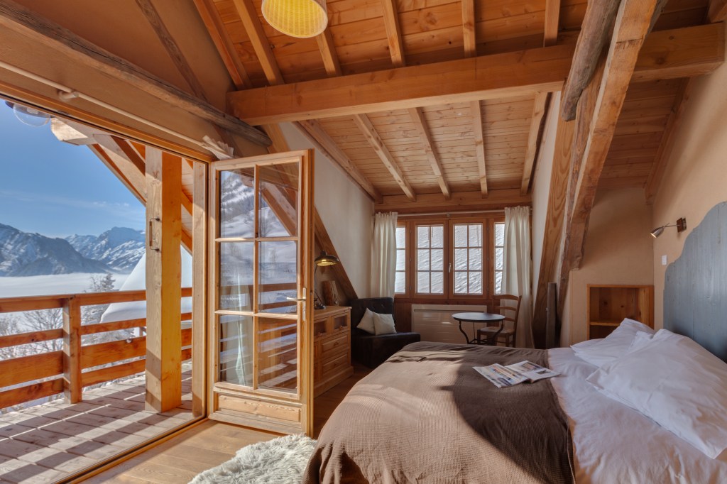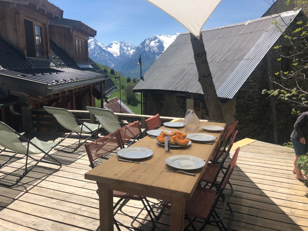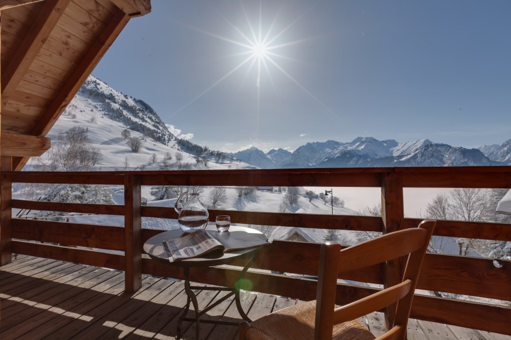Le chalet offre plusieurs grands balcons orientés plein sud avec une vue à couper le souffle sur les montagne.
