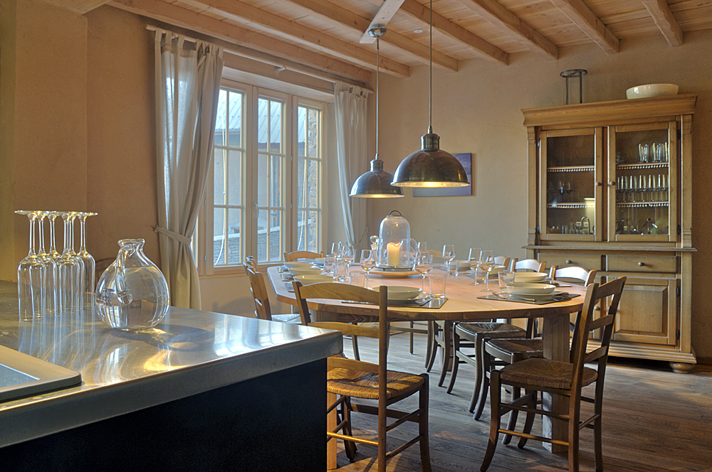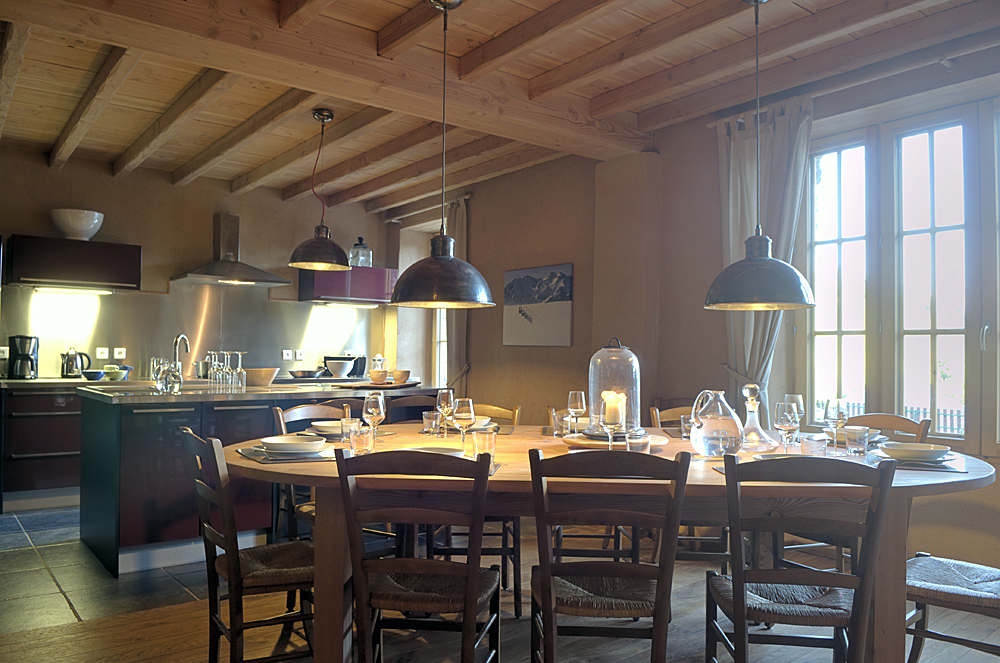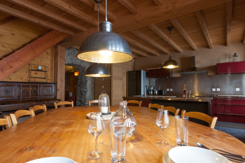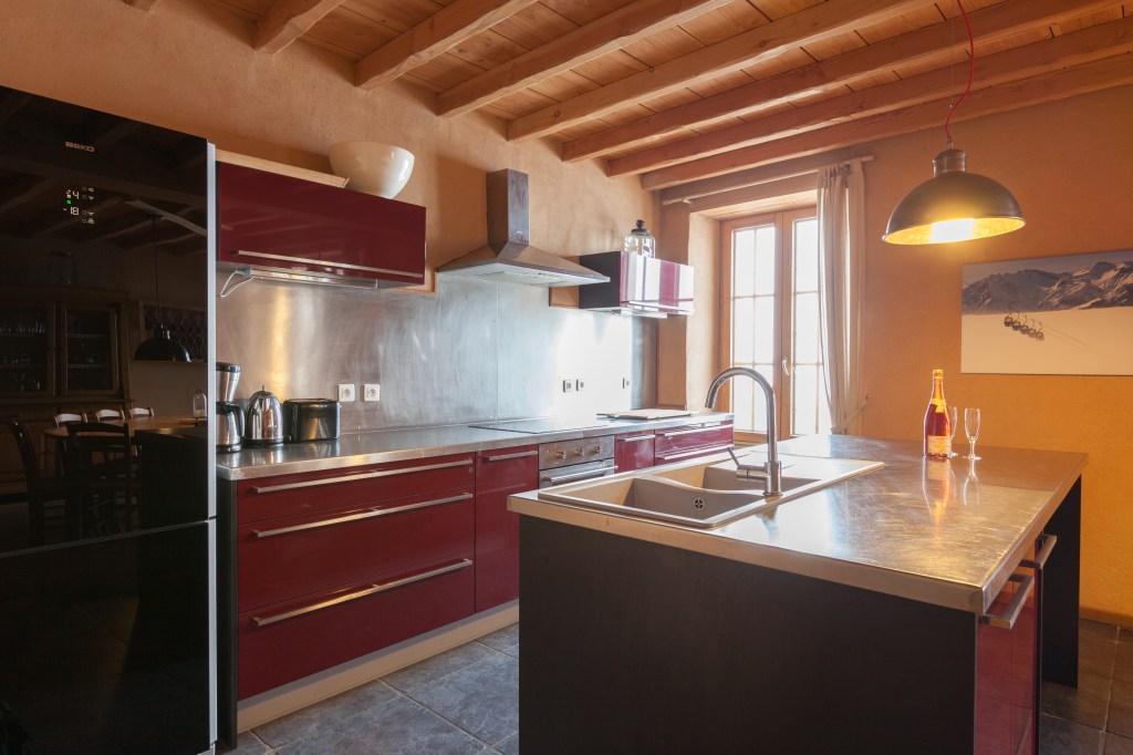 Cuisine entièrement équipée qui dispose de 2 machines à café, théière, 2 appareils à raclette, fondue, gaufrière, crépière et même une machine pour faire ses pâtes maisons.